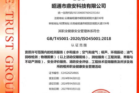 2003年11月10日,昭通市鼎安科技有限公司成立,初始主要從事第三方安全工程技術(shù)服務(wù),經(jīng)多年運(yùn)營,發(fā)展為多專業(yè)綜合科技平臺(tái),為社會(huì)提供多種專業(yè)技術(shù)服務(wù)工作。 現(xiàn)公司注冊資金為1200萬元,公司法定代表人:毛衛(wèi)旭。公司主要業(yè)務(wù):安全評價(jià)、安全標(biāo)準(zhǔn)化評審、安全工程技術(shù)服務(wù);環(huán)境監(jiān)測、職業(yè)衛(wèi)生檢測、檢驗(yàn);法律訴訟及非訴訟服務(wù);司法鑒定、固定資產(chǎn)投資項(xiàng)目節(jié)能服務(wù);工程咨詢;工程測量測繪;安全教育培訓(xùn)等。是安全生產(chǎn)服務(wù)、安全教育培訓(xùn)機(jī)構(gòu),也是環(huán)境監(jiān)測和職業(yè)衛(wèi)生服務(wù)機(jī)構(gòu),同時(shí)也是綜合的檢測檢驗(yàn)、綜合科技平臺(tái)服務(wù)機(jī)構(gòu)。多年來為公、檢、法、司、軍、警、海關(guān)、仲裁、安監(jiān)、工礦商貿(mào)企業(yè)、社會(huì)團(tuán)體及個(gè)人提供多專業(yè)技術(shù)服務(wù)。